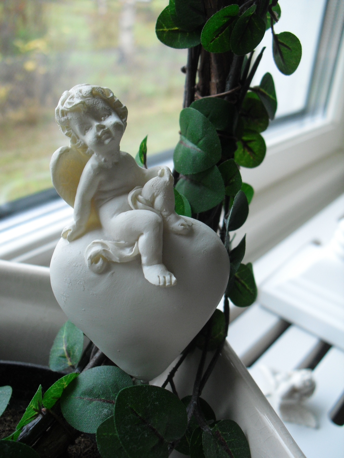 Ängel - hjärtat på bilden har jag köpt för 10 kr på Dollar - Store . Ibland kan man fynda något fint i den affären , även om mycket är skräp .